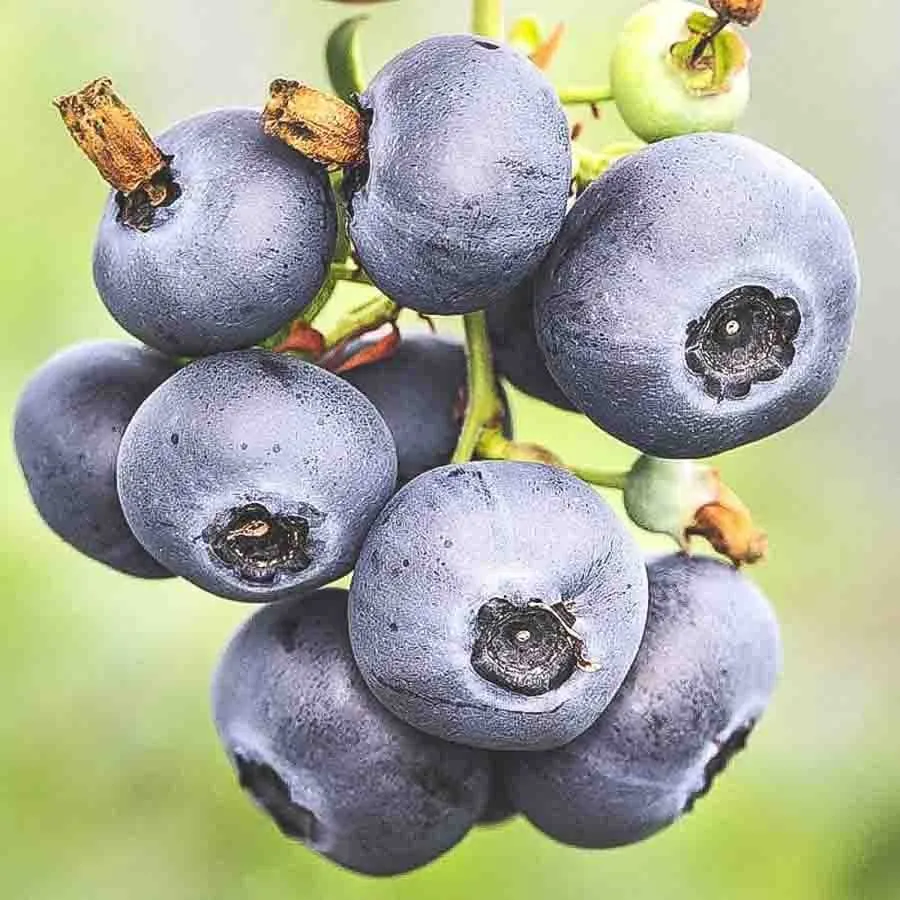Hybridblåbär North Blue kombinerar imponerande bärskörd med en låg och kompakt växtform. Sorten har utvecklats vid University of Minnesota för att möta tuffa klimatförhållanden. Busken blir mellan 60 och 120 cm hög och producerar rikligt med stora, mörkblå bär som mäter cirka 1,25 cm i diameter. Tack vare sin extrema härdighet, ned till –37 °C, fungerar North Blue utmärkt även i kalla odlingszoner. Bären passar särskilt bra för infrysning och är älskade för sin smak.