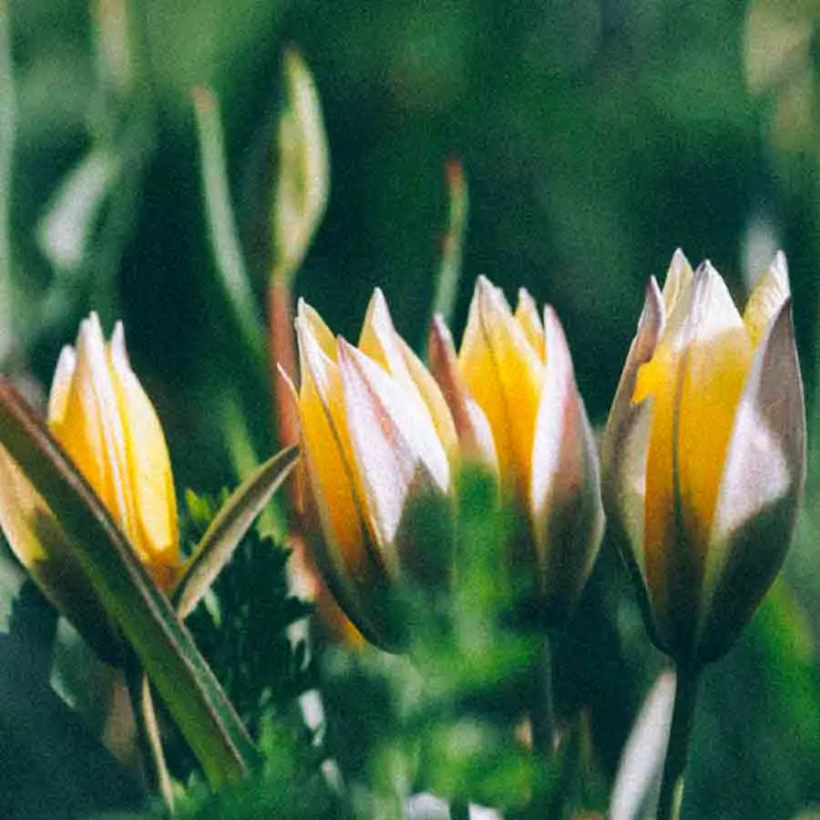 Flocktulpan med lysande gula och vita blommor